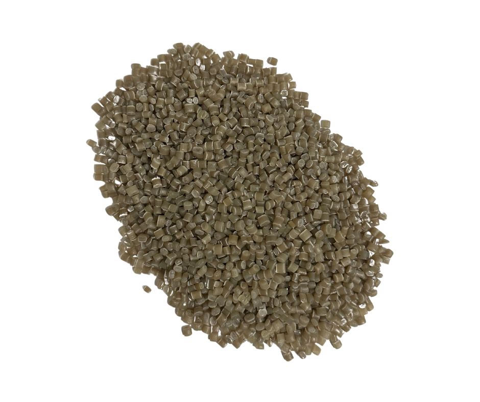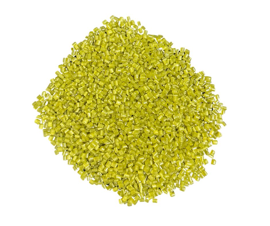 Premium golden-toned recycled pellet with excellent gloss and heat stability, ideal for decorative packaging and high-end molded goods.