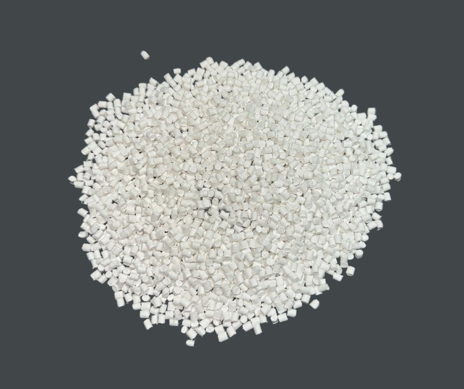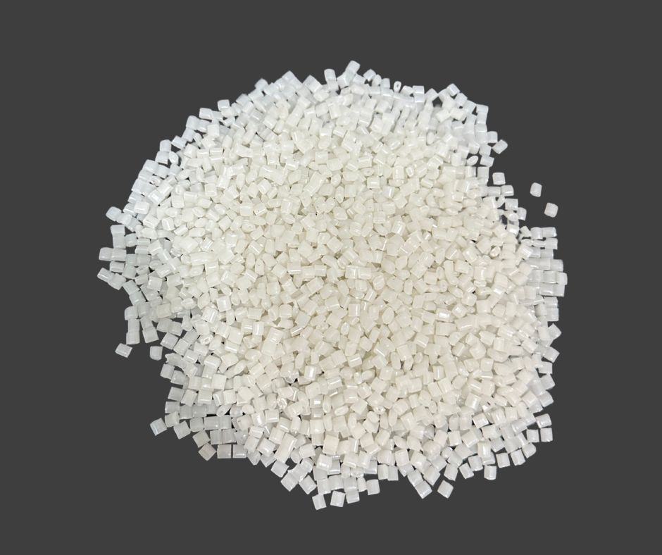 White-colored pellet with a semi-opaque finish, ideal for household packaging, detergent containers, and flexible wrapping requiring a clean, bright appearance.