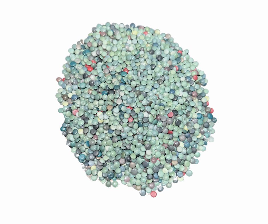 Custom-colored recycled PE, suitable for printed, non-transparent packaging and colored plastic goods.